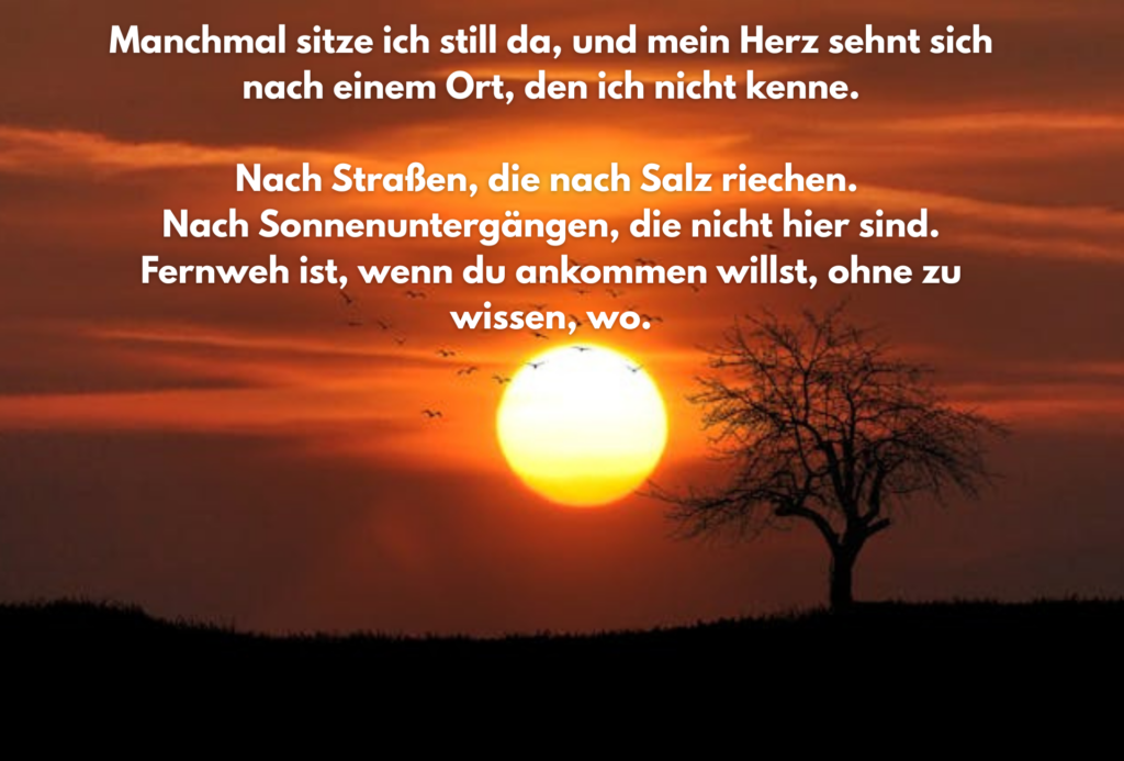 Manchmal sitze ich still da, und mein Herz sehnt sich nach einem Ort, den ich nicht kenne.